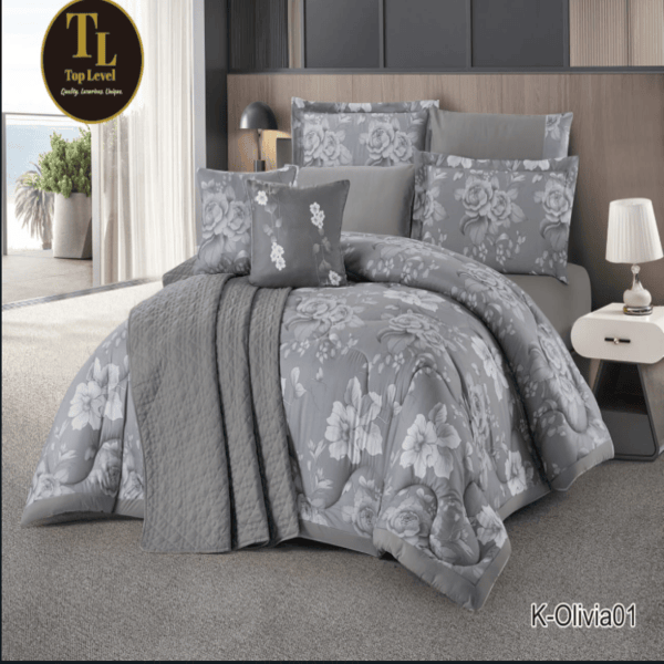 Indulge in ultimate luxury with the Olivia 10-piece Super King Comforter and Bedcover Set — where elegance meets comfort. Crafted for those who appreciate quality and style, this set features a premium ultra-soft comforter, a beautifully tailored bedcover, and matching accessories to completely transform your bedroom. Designed for Kenyan bedrooms with generous sizing and breathable, all-season fabric, the Olivia set brings hotel-style luxury straight to your home.